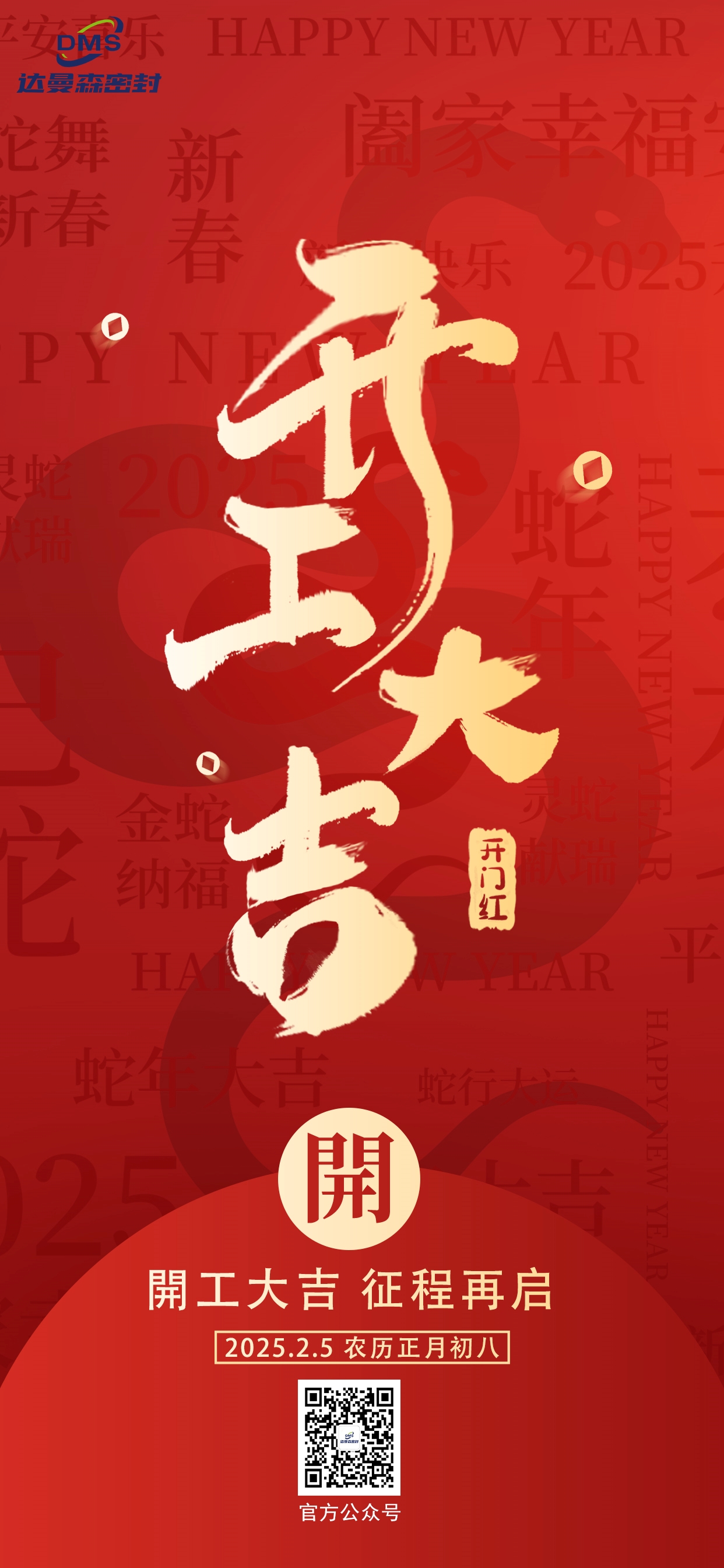 大年初八,福運滿倉![佛山市達曼森密封科技有限公司]正式開工啦!過去承蒙您的支持,新的一年我們定不負所望,用更優(yōu)質(zhì)的服務(wù)與產(chǎn)品,伴您事業(yè)一路“狂飆”,再創(chuàng)輝煌佳績!