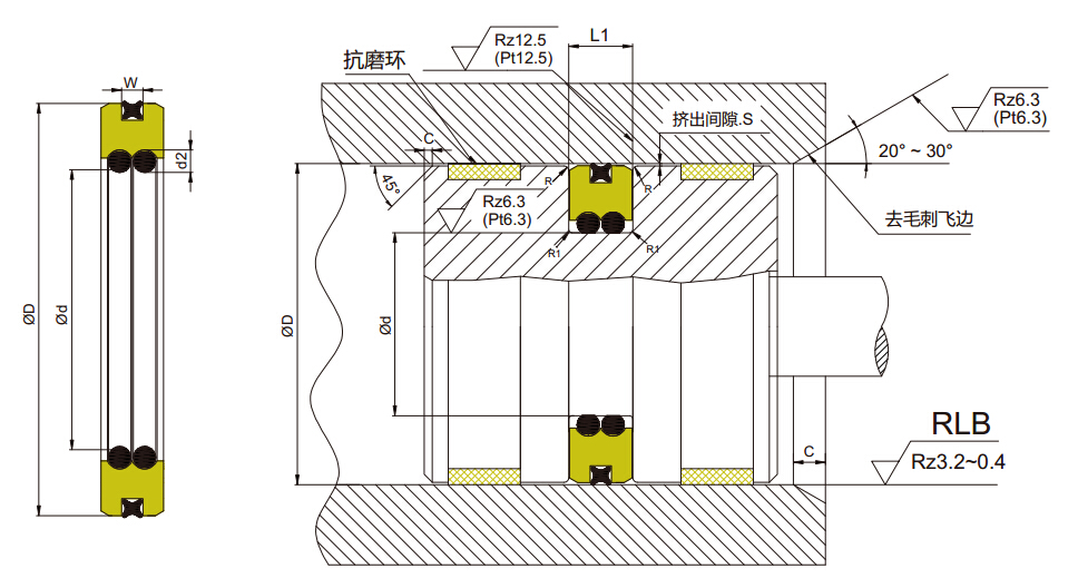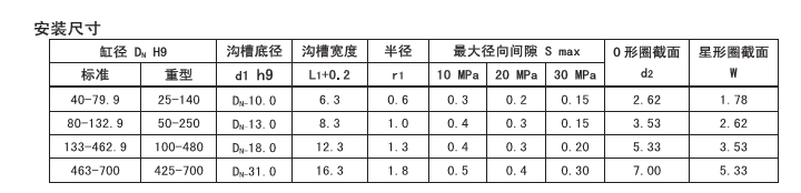 星形圈:丁腈橡膠NBR或氟橡膠FKM